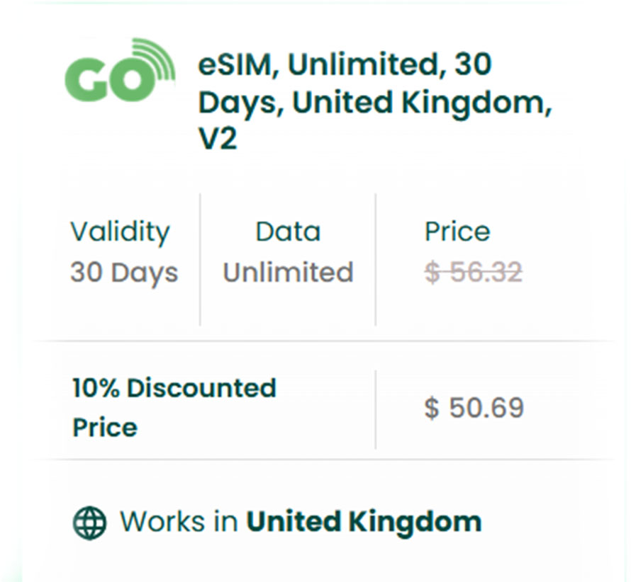 Our eSIM offers you dependable, contract-free data at reasonable prices. It becomes active minutes after landing and offers a continuous browsing, streaming and messaging. And in case you need the best eSIM in the UK, well, here you go.